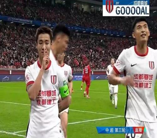 第40分钟,韦林顿-席尔瓦外围轰出一脚石破天惊的世界波,成都蓉城2-0!