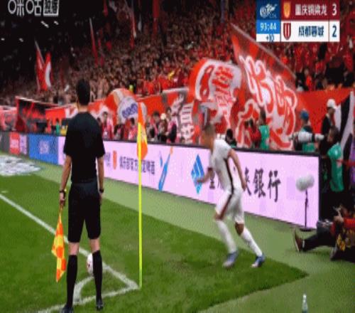 补时第90+4分钟,罗慕洛开出右侧角球,门前乱战中,韦世豪头球顶在了拜合拉木的身上撞进球门,VAR介入,进球有效,蓉城3-3扳平铜梁龙!